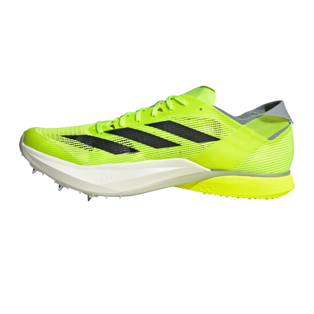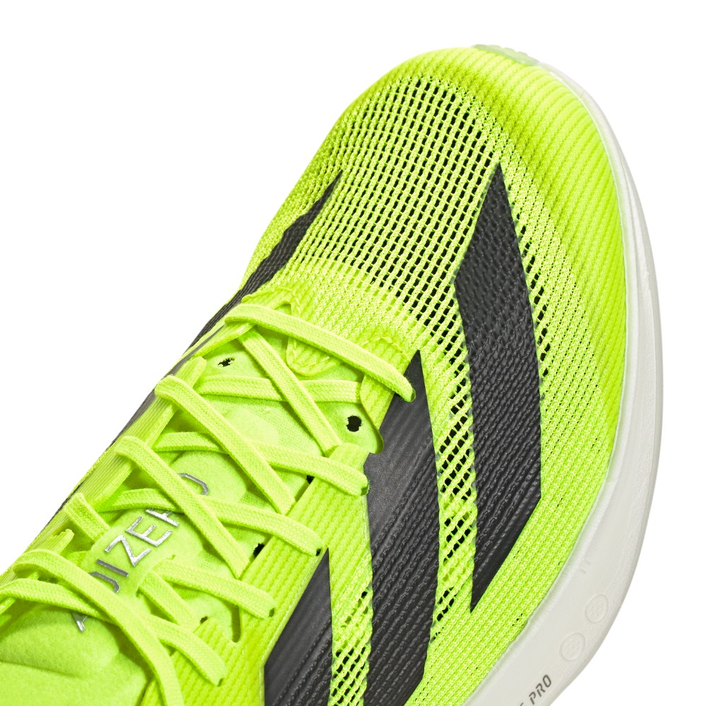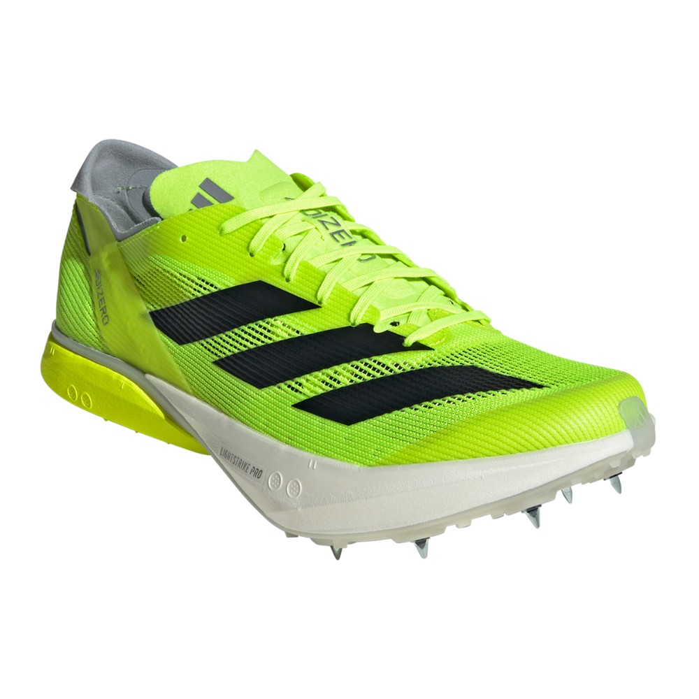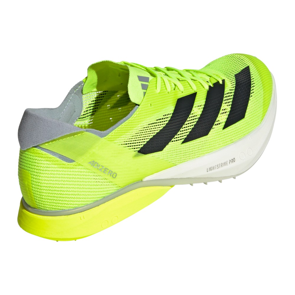 Feel fast from the starting line to the finish in these adidas running shoes. Designed for races ranging from 3K to 10K, they feature a Lightstrike Pro midsole that combines super-light cushioning and energy return for next-level speed. The full-length spike plate has a sharkskin grip for a firm feel underfoot and a snappy toe-off. This product features at least 20% recycled materials. By reusing materials that have already been created, we help to reduce waste and our reliance on finite resources and reduce the footprint of the products we make.