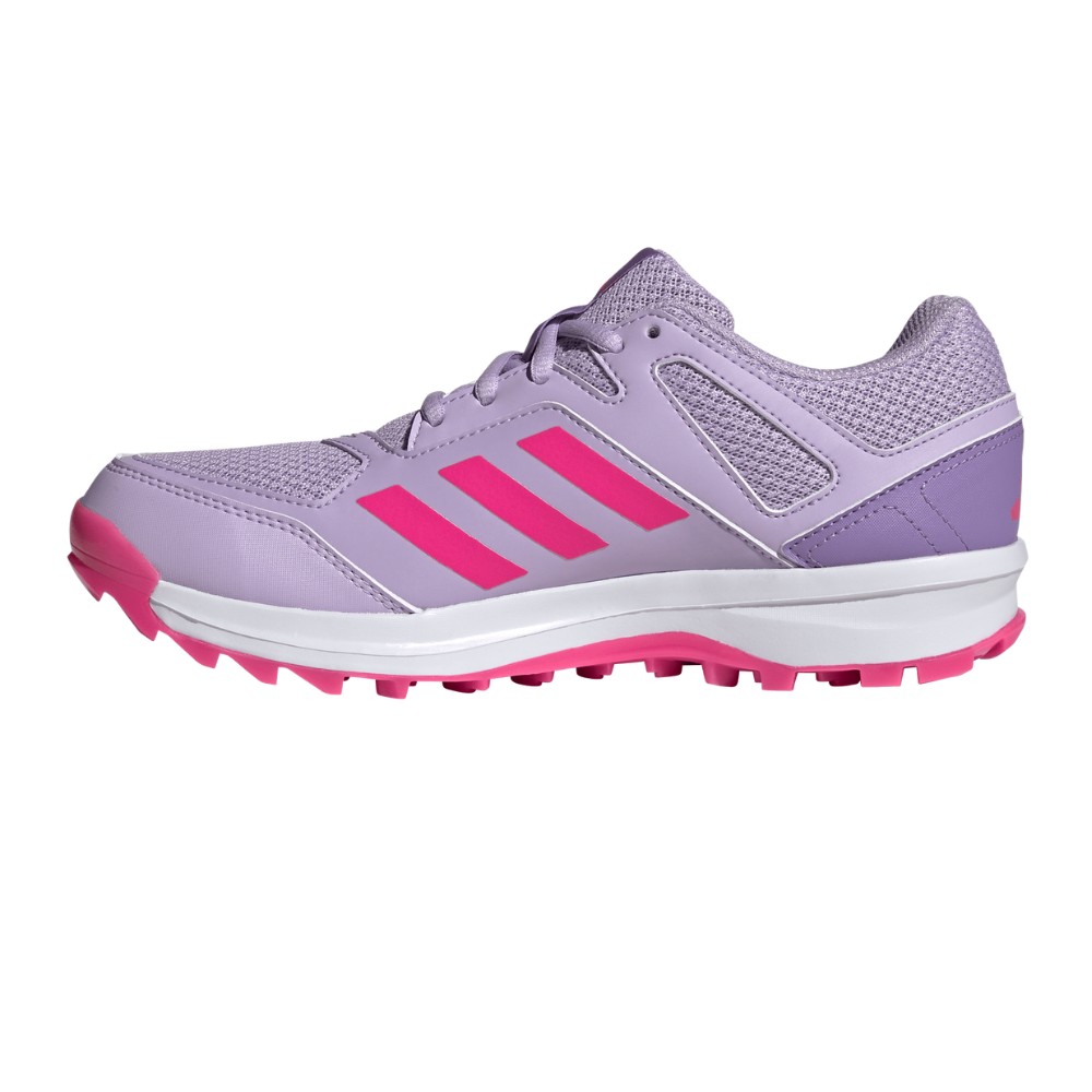 Put a quick goal on the scoreboard in these women’s hockey shoes. Designed with a breathable mesh upper to help keep you cool on the pitch, the shoes feature synthetic overlays that offer added support for lateral movement. Foil-covered layers help keep feet dry, while lugs on the moulded rubber outsole provide optimal grip as you dribble, pass and shoot.