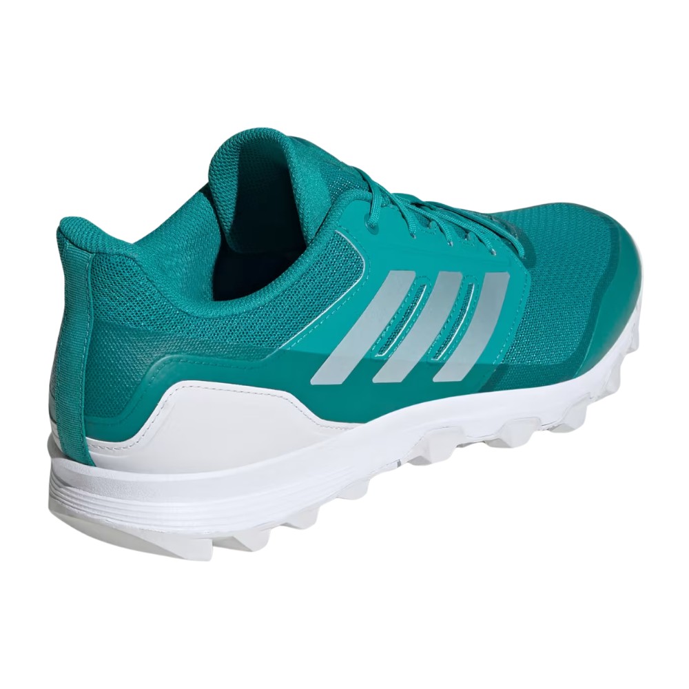 Your footwear should be the last thing you think about on the hockey pitch. That’s why these adidas Flexcloud shoes field a breathable air mesh upper that sits on a cushioned Cloudfoam midsole. A foil overlay adds extra support and durability, while a TPU toe cap defends you from ball impacts. Underneath, the lugged rubber outsole keeps you stable and in control. This product is made with Primegreen, a series of high-performance recycled materials. 50% of the upper is recycled content. No virgin polyester.