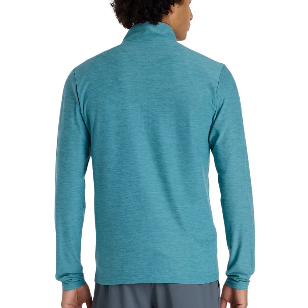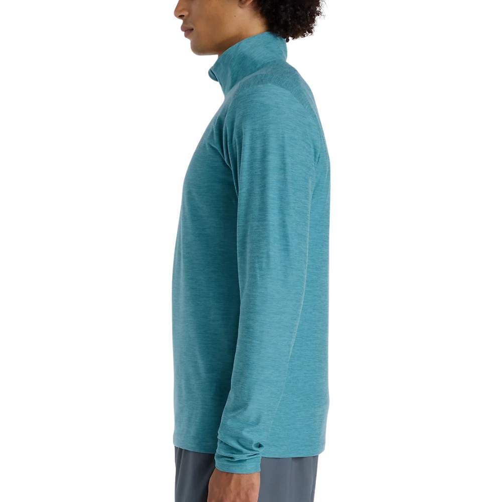 A versatile layer, this moisture-wicking New Balance Space Dye men’s 1/4 Zip (Teal) pullover was designed for function and style. Also available in Black.